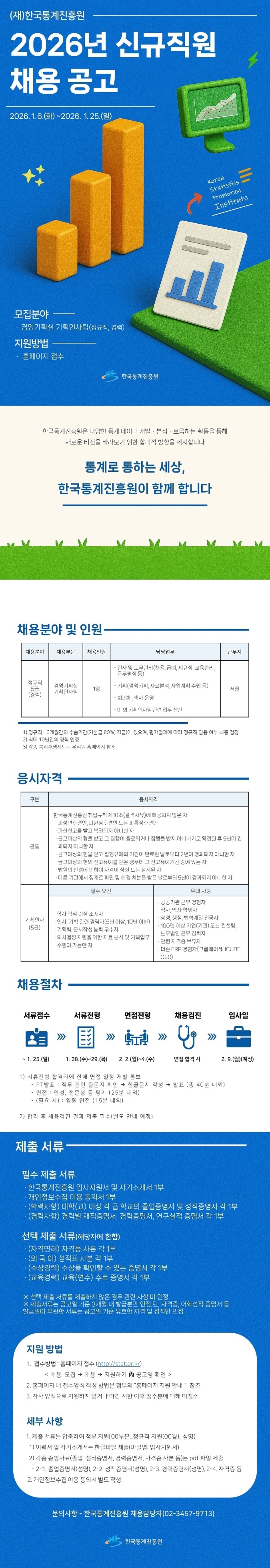 2026년 제2차 한국통계진흥원 직원 채용 공고(경영기획실 정규직, 1월)