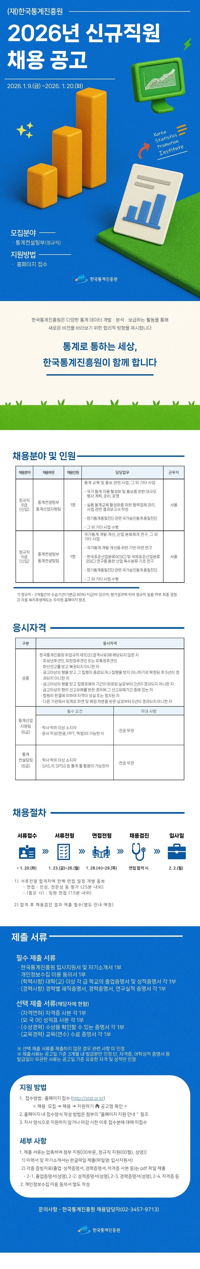 2026년 제3차 한국통계진흥원 직원 채용 공고(통계컨설팅부 정규직, 1월)