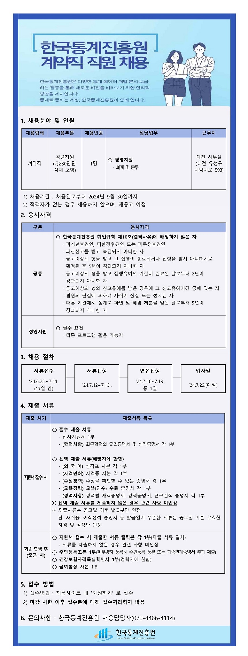 - 알바천국 : (재)한국통계진흥원 : 제9차 한국통계진흥원 직원 채용(경영기획실 계약직) - 알바천국 (alba.co.kr)