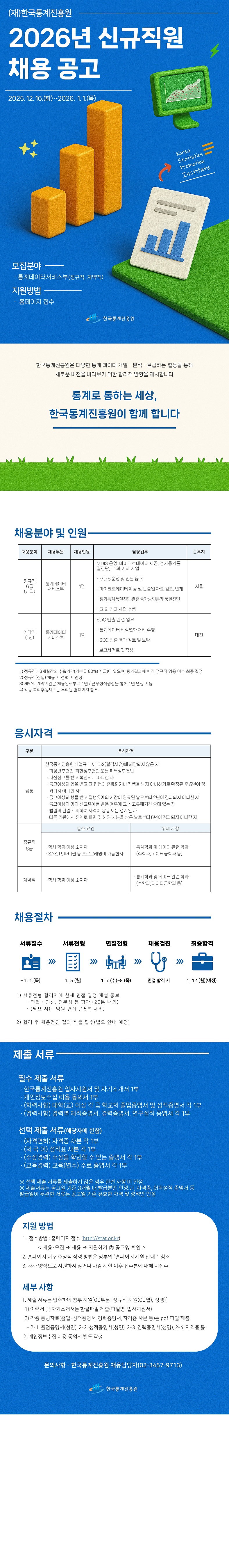 2026년 제1차 한국통계진흥원 직원 채용 공고(통계데이터서비스부 정규직/계약직, 1월)
