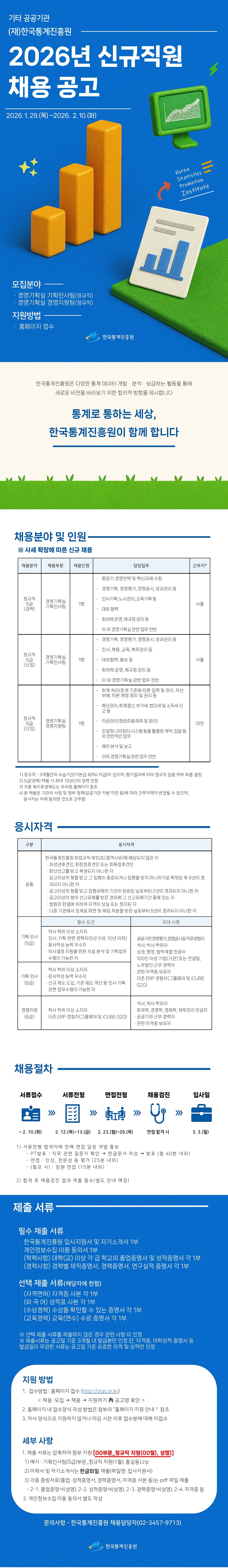 2026년 제5차 한국통계진흥원 직원 채용 공고(경영기획실 정규직, 1월)